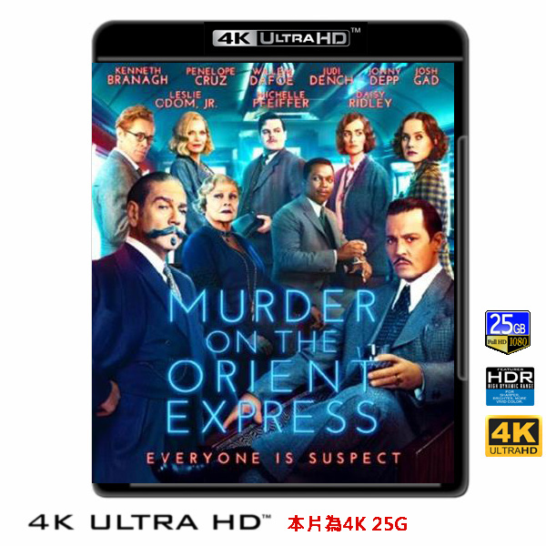 商品屬性 [片名] 東方快車謀殺案 Murder on the Orient Express (2017) 4KUHD25G [年份] 2017 [格式] 4KUHD25G [片裝數] 1 [發音] 英語DD-Atmos...等多條 [字幕] 繁中/簡中/英 [備註] 本片為4KUHD25G,藍光機無法播放,必須用4KUHD25G帶HDR的播放機來放影 本片為4KUHD - 25G本片為4KUHD影片,必須用4KUHD帶HDR播放機才可以播放,一般藍光機(Blu-ray Player, PS3, PS4, PS4 pro,Blu-ray Rom,升級後的Xbox ONE S/X 均無法讀取影片).HDR效果:必須4KUHD播放機配合電視為4K帶HDR及亮度達700NIT以上才可以完美享受HDR效果.市場上很多假4K播放機及平價假4K電視,相關規格不詳,請小心購買.有關4KUHD的問題,請參考>>>>點入參考<<<4KUHD實物包裝如圖:英國推理小說作家阿嘉莎克莉絲蒂的傑作將再被重拍,躍上大螢幕。英國才子肯尼斯布萊納執導並主演擁有小小灰色腦細胞的神探赫丘勒白羅,卡司還有茱蒂丹契、強尼戴普、蜜雪兒菲佛、潘妮洛普克魯茲、喬許蓋德、黛西蕾德莉。 劇情描述一輛由伊斯坦堡開往歐洲的列車上,夾雜著不同階級、不同年齡層,來自世界各國的人;他們互不相識,卻必須要在一起生活三天。他們在同一個屋簷下睡覺、吃飯,躲也躲不開。三天之後,他們又將分道揚鑣,各奔東西,而且很可能永不再相見,但沒想到一場意外的大雪讓他們受困途中,最令人難以忍受的竟是車上發生了一起可怕的懸疑謀殺案。 殺手看似逃之夭夭,但遺留下的線索卻又指向車上的每一位乘客,這樣的與世隔絕狀態讓這些素昧平生的乘客,全因這起案件讓大家的命運糾結在一起,而究竟誰是殺手?誰又是無辜的?一切都將由偵探白羅(肯尼斯布萊納 飾)抽絲剝繭地一一解開。 《東方快車謀殺案》改編自英國推理女王,人稱謀殺天后的阿嘉莎克莉絲蒂(Agatha Christie)生涯代表同名小說,自1934年發行後便大獲好評,不僅被全球推理迷一致大封為「燒腦神作」,歷久不衰的超級經典地位在80餘年間,不斷的被世界各國翻拍成電影及影集,而這位推理女王之驚人的創作能量讓她個人的著作銷量超過數十億產值,其記錄在世上僅次於聖經及莎士比亞。用戶評論
