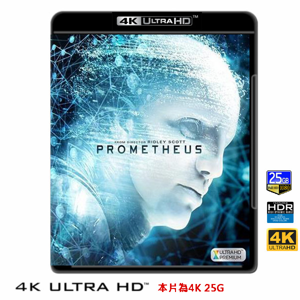 商品屬性 [片名] 普羅米修斯 Prometheus (2011) 4KUHD25G [年份] 2011 [格式] 4KUHD25G [片裝數] 1 [發音] 英語DTS-HD MA7.1..等多條 [字幕] 繁中/簡中/英 [備註] 本片為4KUHD25G,藍光機無法播放,必須用4KUHD25G帶HDR的播放機來放影 本片為4KUHD - 25G本片為4KUHD影片,必須用4KUHD帶HDR播放機才可以播放,一般藍光機(Blu-ray Player, PS3, PS4, PS4 pro,Blu-ray Rom,升級後的Xbox ONE S/X 均無法讀取影片).HDR效果:必須4KUHD播放機配合電視為4K帶HDR及亮度達700NIT以上才可以完美享受HDR效果.市場上很多假4K播放機及平價假4K電視,相關規格不詳,請小心購買.有關4KUHD的問題,請參考>>>>點入參考<<<4KUHD實物包裝如圖:21世紀末,人類的科技水準已高度發達,克隆人技術和宇宙航行早已實現,不再是夢想。與此同時,許多科學家仍孜孜不倦追索著人類起源的秘密與真相。通過對許多古老文明的考察與對比,科學家伊莉莎白‧肖(Noomi Rapace 飾)和查理‧赫洛維(Logan Marshall-Green 飾)發現,人類可能是來自一個遙遠星系的外星人創造的。在Weyland公司資助下,他們乘坐維克絲(查理茲‧塞隆 Charlize Theron 飾)所掌管的太空船普羅米修士號前往那顆未知的星球。經過對當地的考察,地球人的設想成功得到印證。可是他們貿然探查「神的秘密」的行為,也將自己引入萬劫不復的深淵……