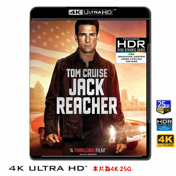 商品屬性 [片名] 神隱任務 Jack Reacher (2012) 4KUHD25G [年份] 2012 [格式] 4KUHD25G [片裝數] 1 [發音] 英DTS-HD MA7.1..等多條 [字幕] 繁中/簡中/英 [備註] 本片為4KUHD25G,藍光機無法播放,必須用4KUHD25G帶HDR的播放機來放影 本片為4KUHD - 25G本片為4KUHD影片,必須用4KUHD帶HDR播放機才可以播放,一般藍光機(Blu-ray Player, PS3, PS4, PS4 pro,Blu-ray Rom,升級後的Xbox ONE S/X 均無法讀取影片).HDR效果:必須4KUHD播放機配合電視為4K帶HDR及亮度達700NIT以上才可以完美享受HDR效果.市場上很多假4K播放機及平價假4K電視,相關規格不詳,請小心購買.有關4KUHD的問題,請參考>>>>點入參考<<<4KUHD實物包裝如圖:影片根據「英國驚悚小說天王」李查德的小說《完美嫌犯》改編。 六發子彈,五名死者,神秘槍手在鬧市區製造了一起慘案讓整個城市都陷入了恐慌。所有的證據都指向了前軍隊狙擊手詹姆斯‧巴爾(約瑟夫‧斯科拉 Joseph Sikora 飾)。但他堅持自己的清白並要求把老相識 傑克‧ 理查爾(湯姆‧克魯斯 Tom Cruise 飾)找來,兩人曾同在軍隊中服役。隨著傑克調查的深入,他發現了更大的謎團,炮製這場慘案的真兇似乎另有其人,而別有用心的幕後黑手抓走了巴爾 ,只留下傑克一人探明真相。 六發子彈中有一發漏空的子彈是殺手故意放空的。為了瞭解狙擊手的工作,傑克特意來到了狙擊手的訓練營找到了一個叫做薩繆爾‧卡什(羅伯特‧杜瓦爾 Robert Duvall 飾)的教練。在卡什和巴爾妹妹以及律師的幫助下,傑克漸漸走進了事件的中心位置,一個關於蘇聯改造營和俄羅斯黑幫的秘密也慢...(展開全部)影片根據「英國驚悚小說天王」李查德的小說《完美嫌犯》改編。 六發子彈,五名死者,神秘槍手在鬧市區製造了一起慘案讓整個城市都陷入了恐慌。所有的證據都指向了前軍隊狙擊手詹姆斯‧巴爾(約瑟夫‧斯科拉 Joseph Sikora 飾)。但他堅持自己的清白並要求把老相識 傑克‧ 理查爾(湯姆‧克魯斯 Tom Cruise 飾)找來,兩人曾同在軍隊中服役。隨著傑克調查的深入,他發現了更大的謎團,炮製這場慘案的真兇似乎另有其人,而別有用心的幕後黑手抓走了巴爾 ,只留下傑克一人探明真相。 六發子彈中有一發漏空的子彈是殺手故意放空的。為了瞭解狙擊手的工作,傑克特意來到了狙擊手的訓練營找到了一個叫做薩繆爾‧卡什(羅伯特‧杜瓦爾 Robert Duvall 飾)的教練。在卡什和巴爾妹妹以及律師的幫助下,傑克漸漸走進了事件的中心位置,一個關於蘇聯改造營和俄羅斯黑幫的秘密也慢慢浮出水面……用戶評論