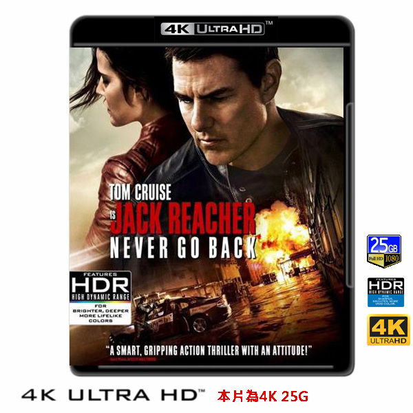 商品屬性 [片名] 神隱任務:永不回頭 Jack Reacher: Never Go Back (2016) 4KUHD25G [年份] 2016 [格式] 4KUHD25G [片裝數] 1 [發音] 英DD-Atmos..等多條 [字幕] 繁中/簡中/英 [備註] 本片為4KUHD25G,藍光機無法播放,必須用4KUHD25G帶HDR的播放機來放影 本片為4KUHD - 25G本片為4KUHD影片,必須用4KUHD帶HDR播放機才可以播放,一般藍光機(Blu-ray Player, PS3, PS4, PS4 pro,Blu-ray Rom,升級後的Xbox ONE S/X 均無法讀取影片).HDR效果:必須4KUHD播放機配合電視為4K帶HDR及亮度達700NIT以上才可以完美享受HDR效果.市場上很多假4K播放機及平價假4K電視,相關規格不詳,請小心購買.有關4KUHD的問題,請參考>>>>點入參考<<<4KUHD實物包裝如圖:《末代武士》《血鑽石》愛德華玆維克執導,湯姆克魯斯主演。《神隱任務》改編自英國暢銷作家李查德推理小說「浪人神探傑克李奇」系列,主角傑克李奇是受過嚴格軍事訓練的探員,36歲就退休成了來無影去無蹤的浪人神探。 《神隱任務:永不回頭》劇情將基於系列中李查德一書改編,延續上一集劇情,這系列已在全球暢銷破億本。李奇從軍隊退役後,透娜少校接掌他的職位,不料被扣上叛國的罪名遭逮補,但她其實是無辜的。李奇必須把她從監獄救出來,揭發政府內部龐大的共謀結構,以示兩人的清白。李奇在逃亡的過程中,也意外發現自己過往的秘密,他的人生將因此改變。 阿湯哥飾演的傑克李奇將重返維吉尼亞的美國軍警總部,與舊識特納少校解決一些「私人問題」,怎料特納卻被逮捕,傑克也因此被誣陷犯有重罪,失去記憶的他必須抽絲剝繭,找出陰謀背後的真相併為自己洗刷罪名。