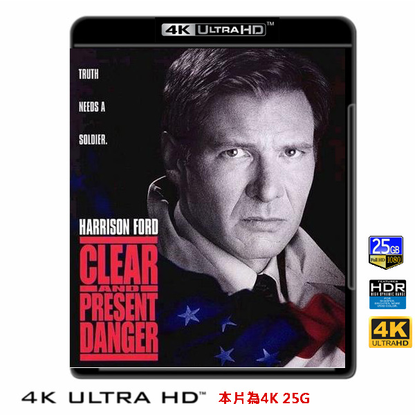 商品屬性 [片名] 迫切的危機 Clear and present danger (1994) 4KUHD25G [年份] 1994 [格式] 4KUHD25G50G [片裝數] 1 [發音] 英DD-Atmos(兼容DD-HD 7.1)...等 [字幕] 繁中/簡中/英 [備註] 本片為4KUHD25G,藍光機無法播放,必須用4KUHD25G帶HDR的播放機來放影 本片為4KUHD - 25G本片為4KUHD影片,必須用4KUHD帶HDR播放機才可以播放,一般藍光機(Blu-ray Player, PS3, PS4, PS4 pro,Blu-ray Rom,升級後的Xbox ONE S/X 均無法讀取影片).HDR效果:必須4KUHD播放機配合電視為4K帶HDR及亮度達700NIT以上才可以完美享受HDR效果.市場上很多假4K播放機及平價假4K電視,相關規格不詳,請小心購買.有關4KUHD的問題,請參考>>>>點入參考<<<4KUHD實物包裝如圖:哈里森‧福特依舊飾演美國中情局乾員傑克‧雷恩,這一次他捲入了哥倫比亞的販毒戰爭之中,因為美國總統的友人遭毒販謀殺,雷恩奉命追查真相。但另一方面總統又派了秘密的突擊小組對付毒販集團,使雷恩在狀況不明、敵友不分的情況下陷入重重危機。改編自湯姆.克蘭西的暢銷小說,是《愛國者遊戲》的續集。哈里森.福特依舊飾演美國中情局乾員傑克.雷恩,這一次他捲入了哥倫比亞的販毒戰爭之中,因為美國總統的友人遭毒販謀殺,雷恩奉命追查真相。但另一方面總統又派了秘密的突擊小組對付毒販集團,使雷恩在狀況不明、敵友不分的情況下陷入重重危機之中。導演菲利普.諾伊斯的敘事手法簡練,將後冷戰時代複雜的國際局勢和政治權謀的詭異多變交代得很清楚,同時也兼顧了動作場面緊張刺激的娛樂性,堪稱是成功的政治驚險片,但觀眾欣賞本片時非得聚精會神不可,要不然難以瞭解其中的微言大義。