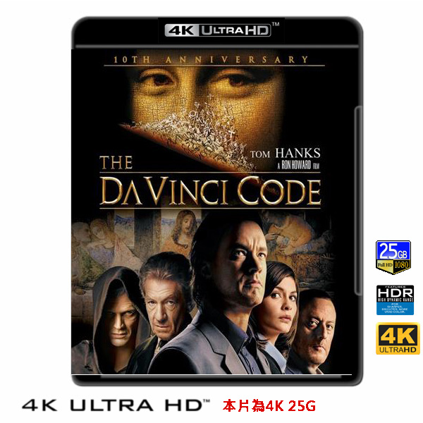 商品屬性 [片名] 達文西密碼 The Da Vinci Code (2006) 4KUHD25G [年份] 2006 [格式] 4KUHD25G50G [片裝數] 1 [發音] 英7.1ATOMS...等 [字幕] 繁中/簡中/英 [備註] 本片為4KUHD25G,藍光機無法播放,必須用4KUHD25G帶HDR的播放機來放影 本片為4KUHD - 25G本片為4KUHD影片,必須用4KUHD帶HDR播放機才可以播放,一般藍光機(Blu-ray Player, PS3, PS4, PS4 pro,Blu-ray Rom,升級後的Xbox ONE S/X 均無法讀取影片).HDR效果:必須4KUHD播放機配合電視為4K帶HDR及亮度達700NIT以上才可以完美享受HDR效果.市場上很多假4K播放機及平價假4K電視,相關規格不詳,請小心購買.有關4KUHD的問題,請參考>>>>點入參考<<<4KUHD實物包裝如圖:《美麗境界》導演朗霍華的最新作品,湯姆漢克,尚雷諾,奧黛麗朵杜主演,也是首部獲准進入法國羅浮宮拍攝的好萊塢電影,在全球創下新台幣兩百五十二億元的高票房。 羅浮宮館長遭人謀殺,屍體旁竟留下一連串的密碼,而前往協助調查的哈佛教授羅伯蘭登,卻意外發現了一個神秘組織,以及基督教埋藏了兩千多年的秘密。所有的線索,居然就隱藏在達文西的作品中,只是數世紀以來都被世人忽略,而西方文明歷史更將就此被改寫…。 達文西密碼小說自從問世以來,因為主題的爭議性,已成為全球熱銷的必讀經典,而新力影業決定買下版權改拍成電影版本,更是喧騰一時。 湯姆漢克打敗包括羅素克洛、羅夫范恩斯、喬治克魯尼等人拿下羅伯蘭登的角色,但在拍片前,他竟然沒看過這部紅片半邊天的小說,連《達文西密碼》發生的年代都不曉得,甚至還問經紀人:「我是不是要演達文西啊?」 不過當湯姆聽了經紀人的建議拿起小說,看了40頁,他就非常確定這將會是份有趣的工作,一部分是因為小說的故事性,另一部分是因為他對達文西的崇拜,他表示在電影拍攝期間每個演員或多或少受到達文西的影響,就像在羅浮宮內拍戲,四周圍繞著大師們的經典作品,不知不覺也被神聖的氣氛所感染,至於放置蒙娜麗莎微笑的那一廳,則是被當作儲藏室及更衣室,湯姆要換衣服時,得走到有5千年阿波羅雕像前,在太陽神面前脫光光,想必也是難得的經驗。 有趣的事情不只如此,電影開拍之初,就不斷傳言將有大批天主教徒出面抗議,但導演朗霍華表示,他並沒有收到什麼抗議信,反而是不少的親朋友好寫信警告他,要他別搞砸了這部曠世鉅作,直到大隊人馬開拔到倫敦近郊林肯教堂拍攝,才有200人聚集在拍片現場,結果198人是為了拿湯姆漢克的簽名,只有兩個人是真的來抗議,其中一個抗議民眾,第一天穿修女服,第二天竟然騎重型機車出現,讓湯姆漢克嘖嘖稱奇!