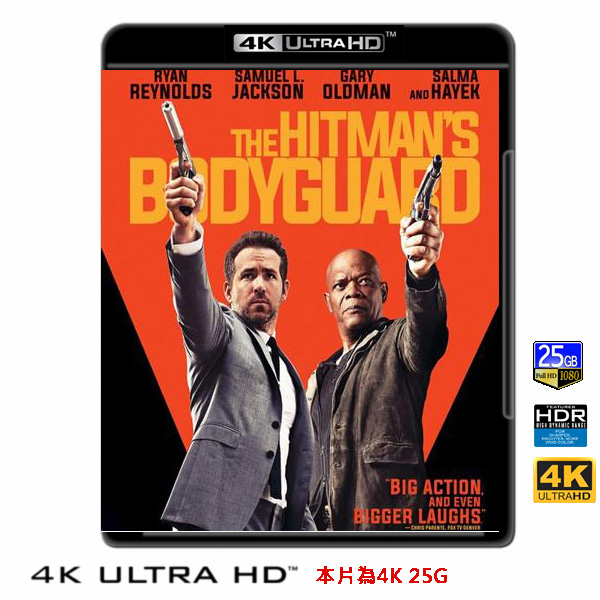 商品屬性 [片名] 殺手保鑣 The Hitman's Bodyguard (2017) 4KUHD25G [年份] 2017 [格式] 4KUHD25G50G [片裝數] 1 [發音] 英7.1DTS:X...等 [字幕] 繁中/簡中/英 [備註] 本片為4KUHD25G,藍光機無法播放,必須用4KUHD25G帶HDR的播放機來放影 本片為4KUHD - 25G本片為4KUHD影片,必須用4KUHD帶HDR播放機才可以播放,一般藍光機(Blu-ray Player, PS3, PS4, PS4 pro,Blu-ray Rom,升級後的Xbox ONE S/X 均無法讀取影片).HDR效果:必須4KUHD播放機配合電視為4K帶HDR及亮度達700NIT以上才可以完美享受HDR效果.市場上很多假4K播放機及平價假4K電視,相關規格不詳,請小心購買.有關4KUHD的問題,請參考>>>>點入參考<<<4KUHD實物包裝如圖:《浴血任務3》導演派屈克休斯執導動作喜劇,《封火線》湯姆歐康納編劇,萊恩雷諾斯、山繆傑克森、蓋瑞歐德曼主演。 「衰爆保鑣」碰上「嘴炮殺手」,你是我今生的冤孽,就是要玩你、弄你、搞你! 全世界最頂尖的保鑣(萊恩雷諾斯 飾)不得不接下一個衰到爆的任務,要保護他畢生最討厭的殺手(山繆傑克森 飾),讓他在24小時內平安到達荷蘭救出被囚禁的妻子,但一路上充滿殺手的仇家設下的陷阱,時間又迫在眉睫,水火不容的兩人要如何攜手對付敵人,並在這瘋狂的24小時內穿越重重阻礙達成任務? 衰爆保鑣 VS. 嘴炮殺手,誰都不能把我們分開? 全世界最惡名昭彰的殺手(山繆傑克森 飾)為了救出被囚禁的妻子(莎瑪海耶克 飾),決定以線民身份到荷蘭出庭作證,但一路上想謀害他的仇家不計其數,為了幫助他順利出庭,全世界首屈一指的頂尖保鑣(萊恩雷諾斯 飾)奉命來保護他,讓他能平安抵達目的地。保鑣和殺手多年來針鋒相對,現在卻要一起從英國前往荷蘭海牙,共度瘋狂的24小時,一路上充滿你來我往的猛烈槍火、高速飛車追逐、歎為觀止的激烈「船」戰 ,還有冷血無情的東歐獨裁家(蓋瑞歐德曼 飾)虎視眈眈,無所不用其極想向殺手尋仇。水火不容的兩人要如何通力合作,才能在時限內成功抵達目的地,順利作證?