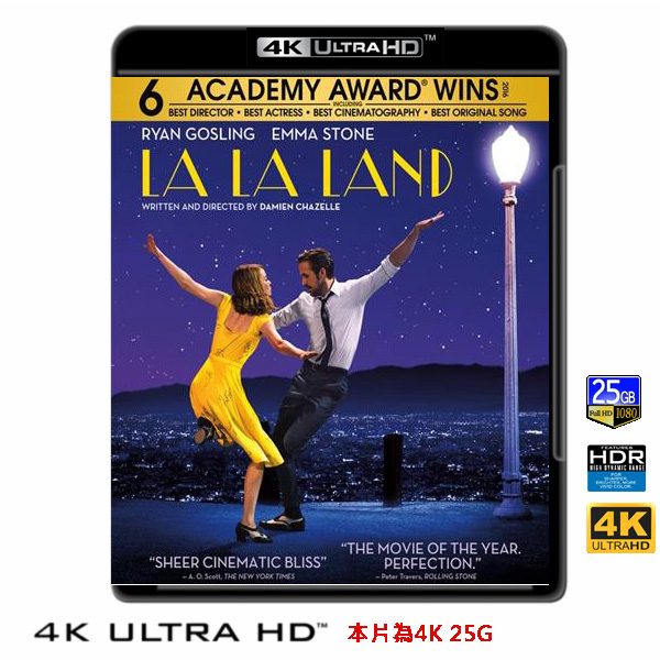商品屬性 [片名] 樂來越愛你 La La Land (2016) 4KUHD25G [年份] 2016 [片裝數] 1 [發音] 英...等 [字幕] 繁中/簡中/英 [備註] 本片為4KUHD25G,藍光機無法播放,必須用4KUHD25G帶HDR的播放機來放影 本片為4KUHD - 25G本片為4KUHD影片,必須用4KUHD帶HDR播放機才可以播放,一般藍光機(Blu-ray Player, PS3, PS4, PS4 pro,Blu-ray Rom,升級後的Xbox ONE S/X 均無法讀取影片).HDR效果:必須4KUHD播放機配合電視為4K帶HDR及亮度達700NIT以上才可以完美享受HDR效果.市場上很多假4K播放機及平價假4K電視,相關規格不詳,請小心購買.有關4KUHD的問題,請參考>>>>點入參考<<<4KUHD實物包裝如圖:第89屆奧斯卡金像獎14項提名,平《鐵達尼號》影史入圍記錄;拿下第89屆奧斯卡最佳導演、最佳女主角、最佳攝影、最佳製作設計、最佳原創配樂、最佳原創歌曲〈City of Stars〉共6項大獎。其他曾入圍奧斯卡14項獎項的包括1950年《彗星美人》與1997年《鐵達尼號》。《進擊的鼓手》導演達米恩查澤雷執導作品,雷恩葛斯林、艾瑪史東大銀幕三續情緣,再度攜手追求夢想,舞出浪漫樂章。 《進擊的鼓手》魔鬼教練J.K.西蒙斯、節奏藍調小天王約翰傳奇聯手加持。在當小演員遇上鋼琴手,夢想與愛情要如何抉擇?落魄的爵士鋼琴家賽巴斯汀(雷恩葛斯林 飾)與懷抱明星夢的小演員蜜亞(艾瑪史東 飾)相遇相知,相愛相惜,一起在充滿可能的洛杉磯互相扶持,追逐夢想。但是,當他們逐漸邁向成功,現實的壓力卻磨損了原本美好的愛情,兩人的關係面臨巨大的考驗……。英文片名「La La Land」即是美國加州南部洛杉磯的暱稱。在洛杉磯這座充滿可能性的大城市裡,寂寥的小演員蜜亞懷抱著明星夢,一邊端著茶水,一邊到處試鏡;落魄的爵士鋼琴家賽巴斯汀,在昏黃的酒吧靠演奏鋼琴維生,勉強餬口。同樣追求夢想的兩人在這座城市裡遇見彼此,陷入情網,相互慰藉扶持,一起追求畢生夢想。但在逐漸達成夢想的同時,兩人的情感也面臨抉擇和考驗,究竟他們