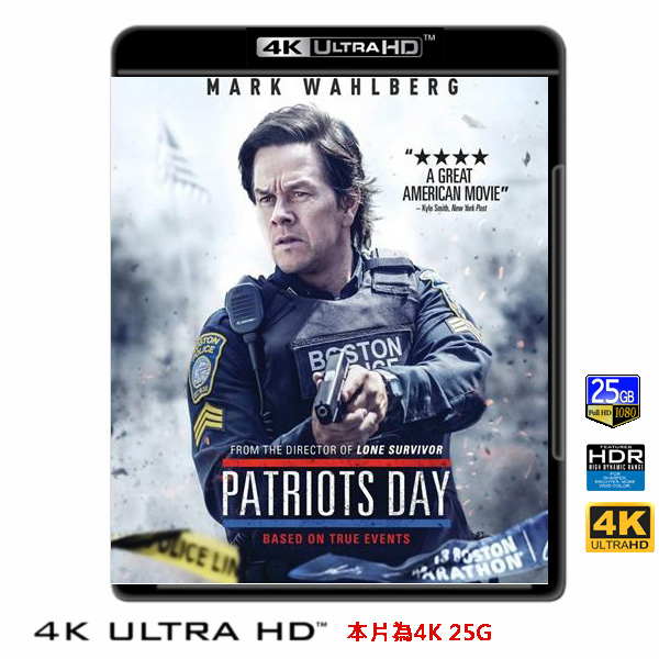 商品屬性 [片名] 愛國者行動 Patriots Day (2017) 4KUHD25G [年份] 2017 [片裝數] 1 [發音] 英...等 [字幕] 繁中/簡中/英 [備註] 本片為4KUHD25G,藍光機無法播放,必須用4KUHD25G帶HDR的播放機來放影 本片為4KUHD - 25G本片為4KUHD影片,必須用4KUHD帶HDR播放機才可以播放,一般藍光機(Blu-ray Player, PS3, PS4, PS4 pro,Blu-ray Rom,升級後的Xbox ONE S/X 均無法讀取影片).HDR效果:必須4KUHD播放機配合電視為4K帶HDR及亮度達700NIT以上才可以完美享受HDR效果.市場上很多假4K播放機及平價假4K電視,相關規格不詳,請小心購買.有關4KUHD的問題,請參考>>>>點入參考<<<4KUHD實物包裝如圖:真人真事紐約時報暢銷小說改編,震驚全球美國史上最大搜捕行動,波士頓馬拉松爆炸案首度搬上大螢幕。美國國家影評協會評選年度10大最佳電影,《紅翼行動》彼得柏格執導,馬克華柏格主演。創辦於1987年的波士頓馬拉松是世界上歷史最悠久的馬拉松盛事,2013年的波士頓馬拉松卻成為恐怖攻擊的對象。4月15日,兩枚炸彈在波馬拉松終點線爆炸,造成3人死亡、282人受傷,成為繼911攻擊後美國傷亡最慘烈的恐怖攻擊事件! 102小時2500名警力,全城封鎖,震驚全球最大搜捕行動真實改編。波士頓馬拉松是全世界歷史最悠久的馬拉松賽事,卻成為恐怖攻擊的頭號目標。2013年,全球各地熱愛馬拉松的運動好手湧進波士頓,但兩聲巨響劃開這個平靜的城市,造成3人死亡、183人受傷,成為911事件後美國傷亡最慘烈的恐怖攻擊事件!警探湯米桑德斯(馬克華伯格 飾)、FBI探員理查戴斯拉瑞爾(凱文貝肯 飾)和警探傑佛瑞波格里斯(JK 西蒙斯 飾)奉命攜手追查爆炸案真相。他們封鎖全波士頓城、動員2500名警力、分秒必爭全面搜索,只為了在恐怖份子再次發動攻擊前,找出炸彈幕後主使者!導演彼得柏格在爆炸案發生的第一天開始就密切觀察所有事件發生的細節,同時他也聯絡出生長大於波士頓的馬克華伯格,不過一開始馬克華伯格有些遲疑,因為這個影響巨大的案件實在太敏感了。但是幾經考慮他覺得這個題材如果自己不拍,一定會有其他的人來拍,但是如果交給一個團隊不瞭解狀況、不尊重這個事件背後重大涵義,不如就由自己來拍吧!同時馬克華柏格不但願意擔任男主角,甚至還跳下來身兼監製的角色,就是希望能夠拍出一部震撼人心卻又無比深刻的電影。用戶評論