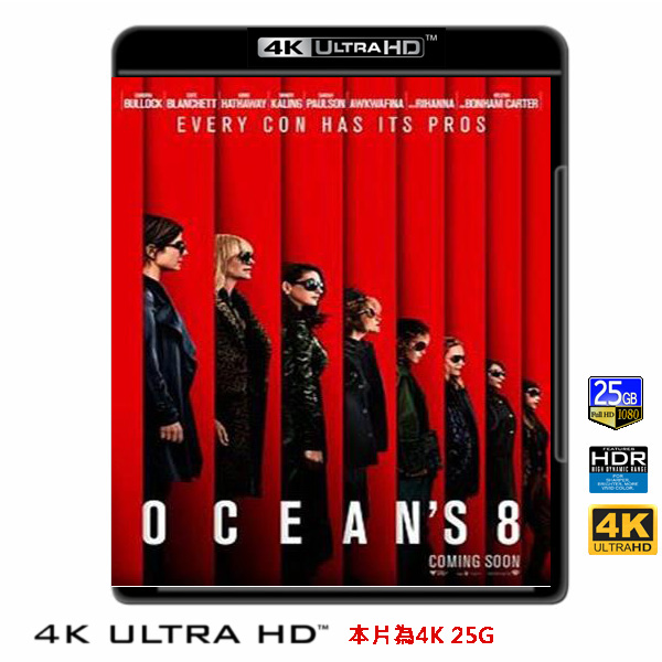 商品屬性 [片名] 瞞天過海:八面玲瓏 Ocean's 8 (2018) 4KUHD25G [年份] 2018 [格式] 4KUHD25G50G [片裝數] 1 [發音] 英...等 [字幕] 繁中/簡中/英 [備註] 本片為4KUHD25G,藍光機無法播放,必須用4KUHD25G帶HDR的播放機來放影 本片為4KUHD - 25G本片為4KUHD影片,必須用4KUHD帶HDR播放機才可以播放,一般藍光機(Blu-ray Player, PS3, PS4, PS4 pro,Blu-ray Rom,升級後的Xbox ONE S/X 均無法讀取影片).HDR效果:必須4KUHD播放機配合電視為4K帶HDR及亮度達700NIT以上才可以完美享受HDR效果.市場上很多假4K播放機及平價假4K電視,相關規格不詳,請小心購買.有關4KUHD的問題,請參考>>>>點入參考<<<4KUHD實物包裝如圖:故事由丹尼歐遜的妹妹:黛比歐遜(珊卓布拉克 飾)開始說起,她和哥哥丹尼一樣擅長偷天換日的計畫,功力甚至有過之而無不及。黛比一出獄便立刻召集了各路行家,以她為首,凱特布蘭琪與她搭擋,一同進行這一場天衣無縫的計畫。 5年8個月又12天,黛比歐遜到數計算著她出獄的時間,而她在獄中也耐心地計畫著她人生最大的一場行動。 一離開監獄,她立刻找來她的犯罪搭檔露米勒(凱特布蘭琪 飾),接著兩人一同號召一群專家,分別是珠寶商雅米塔(敏迪卡靈 飾)、街頭騙子康斯坦絲(奧卡菲娜 飾)、贓物買賣高手譚美(莎拉寶森 飾)、駭客高手九號球(蕾哈娜 飾),以及時裝設計師蘿絲(海倫娜波漢卡特 飾)。 黛比歐遜向這群高手們宣佈她策劃已久的行動計畫:預計在大都會博物館慈善晚宴的會場上,從全球鎂光燈注目焦點的好萊塢知名女星達芙尼克魯格(安海瑟薇 飾)脖子上偷走價值超過1億5000萬美元的鑽石項鍊。這項計畫聽起來難如登天,更何況會場除了媒體和來自全球的與會佳賓之外,還有無數的監視錄影機嚴密監控著每一個角落,更不要說兩名經驗豐富的貼身保鑣,形影不離地保護著達芙妮克魯格與鑽石項鍊,不讓任何閒雜人等靠近。 但黛比歐遜對自己的的計畫充滿信心,只要一切按照計畫走,這群偷天女賊就能夠在眾目睽睽的情況下順利進入會場,完成任務,並且帶著1億5000萬美元的鑽石項鍊全身而退。用戶評論