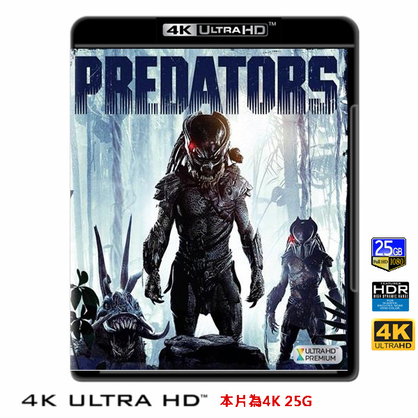 商品屬性 [片名] 終極戰士團 Predators (2010) 4KUHD25G [年份] 2010 [格式] 4KUHD25G50G [片裝數] 1 [發音] 英...等 [字幕] 繁中/簡中/英 [備註] 本片為4KUHD25G,藍光機無法播放,必須用4KUHD25G帶HDR的播放機來放影 本片為4KUHD - 25G本片為4KUHD影片,必須用4KUHD帶HDR播放機才可以播放,一般藍光機(Blu-ray Player, PS3, PS4, PS4 pro,Blu-ray Rom,升級後的Xbox ONE S/X 均無法讀取影片).HDR效果:必須4KUHD播放機配合電視為4K帶HDR及亮度達700NIT以上才可以完美享受HDR效果.市場上很多假4K播放機及平價假4K電視,相關規格不詳,請小心購買.有關4KUHD的問題,請參考>>>>點入參考<<<4KUHD實物包裝如圖:1987年由動作巨星阿諾史瓦辛格主演電影《終極戰士》,創建影史經典異形獵殺片。時隔23年,《萬惡城市》名導勞勃羅瑞格茲領軍製片,展現殿堂級製片實力,找來《針孔旅社》導演尼默安托執導,賦予影史經典作品新意。兩人精準譬喻:「經典版終極戰士就像『卡帶』,新版終極戰士則像『i-Pod',因此新版終極戰士將更俐落優雅,但也更兇猛,」「他們的武器更貼近身體,髮鬚掃到身後讓頭型更延展,外形更高更長更瘦削。」一名受僱傭兵Royce(亞卓安布洛迪 飾),在未知情況下被拋到不明星球,他抵達不久後竟接二連三有人從天而降!他與七名戰士與一名外科醫生間彼此存疑,卻又是必須一同逃亡的生命共同體。過程中他們不斷受到不明異形襲擊,歷經一次次生存激戰,才發現原來他們是這異種星球上的獵物,對他們殘酷獵殺的,竟是疾如風、戰無不勝的終極戰士!牠們體型巨大,能夜視狩獵及嗅出獵物位置,所有人身處這大狩獵場皆無所遁形。原本在地球上身懷「一招斃命」絕技的「人間凶器」殺手群,卻在陰惡外星叢林對戰具隱形能力、行動更迅速,配備更強大肩離子砲(Plasma Caster)及飛天終極獵鷹(Airborne Predator Falcon)的「進化版」新變種終極戰士,一場獵殺與被獵殺的生存遊戲血腥展開。為圖生存,人類該如何逃出終極戰士層層陷阱與追獵?《終極戰士團》呈現新世代科幻動作經典鉅作,起用《戰地琴人》金獎影帝亞卓安布洛迪化身傭兵首領,率領一班冷血人類戰士,在外星球與終極戰士對戰獵殺!片中弱肉強食的狩獵叢林,「升級版」終極戰士成為獵人,原來的終極戰士淪為獵物,亞卓安布洛迪率領的人類戰士卻必須同時面對兩者。亞卓安布洛迪一改過去斯文小生形象,首度挑戰戰技超凡的傭兵首領。布洛迪表示:軍人不一定非得是肌肉棒子,他以精湛演技重新定義新世代軍人形象!本片由《變形金剛》、《納尼亞傳奇》及《萬惡城市》金獎特效團隊─KNB特效小組,創造三組狂暴版終極戰士-馴狗師(Dog Handler)、大獵鷹(Falconer)與黑力士(Mr. Black),這三者相較先前系列電影中更致命的變種終極戰士,並延伸創造包括追殺異形(Ram Runner)、獵犬等終極戰士神話中的外星怪物。片中不論人類或異形殺手的武器同步升級,設計小組更精心製作撕皮鉤、矛、斧頭、陷阱及冑甲,增添近身搏鬥時武器運用及攝影鏡位多元性,電影加入眾多高科技視效,例:砲口炫光、場景延展、數位太空船,還有經典隱形效果,創造兼容經典與創新元素的炫目視覺饗宴。用戶評論