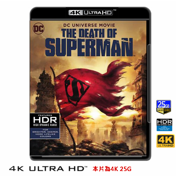 商品屬性 [片名] 超人之死 The Death Of Superman (2018) 4KUHD25G [年份] 2018 [格式] 4KUHD25G50G [片裝數] 1 [發音] 英...等 [字幕] 繁中/簡中/英 [備註] 本片為4KUHD25G,藍光機無法播放,必須用4KUHD25G帶HDR的播放機來放影 本片為4KUHD - 25G本片為4KUHD影片,必須用4KUHD帶HDR播放機才可以播放,一般藍光機(Blu-ray Player, PS3, PS4, PS4 pro,Blu-ray Rom,升級後的Xbox ONE S/X 均無法讀取影片).HDR效果:必須4KUHD播放機配合電視為4K帶HDR及亮度達700NIT以上才可以完美享受HDR效果.市場上很多假4K播放機及平價假4K電視,相關規格不詳,請小心購買.有關4KUHD的問題,請參考>>>>點入參考<<<4KUHD實物包裝如圖:這部全新動畫電影改編自佳評如潮的原著漫畫,揭示了超人此生最艱鉅的一場戰鬥。一顆隕石穿透地球大氣層直衝海底,隨之造訪的不速之客,是一位以無窮憤怒力量為後盾的強大生物兵器「毀滅日」。