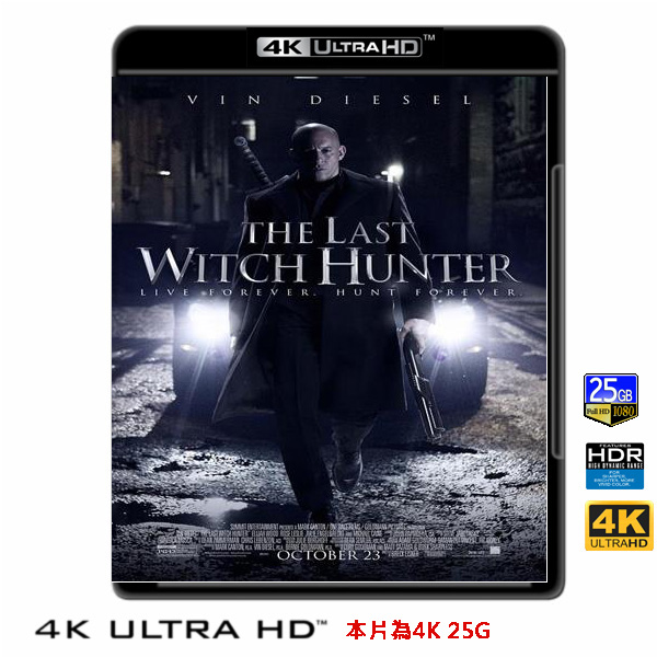 商品屬性 [片名] 獵巫行動:大滅絕 The Last Witch Hunter (2015) 4KUHD25G [年份] 2015 [格式] 4KUHD25G50G [片裝數] 1 [發音] 英...等 [字幕] 繁中/簡中/英 [備註] 本片為4KUHD25G,藍光機無法播放,必須用4KUHD25G帶HDR的播放機來放影 本片為4KUHD - 25G本片為4KUHD影片,必須用4KUHD帶HDR播放機才可以播放,一般藍光機(Blu-ray Player, PS3, PS4, PS4 pro,Blu-ray Rom,升級後的Xbox ONE S/X 均無法讀取影片).HDR效果:必須4KUHD播放機配合電視為4K帶HDR及亮度達700NIT以上才可以完美享受HDR效果.市場上很多假4K播放機及平價假4K電視,相關規格不詳,請小心購買.有關4KUHD的問題,請參考>>>>點入參考<<<4KUHD實物包裝如圖:繼《玩命關頭7》,馮迪索再度自製自演的新片,其他演員包括《冰與火之歌》蘿絲萊斯莉、《魔戒三部曲》伊利亞伍德及《黑暗騎士》米高肯恩等。 身為世上最後一個女巫獵人,寇特背負著世代傳承對抗女巫的命運。在現代的紐約市哩,女巫們蠢蠢欲動,即將對人民發動一場大規模的瘟疫攻擊,肩負消滅邪惡使命的寇特明白這將是他最後一戰,然而面對傾巢而出的女巫所擁有的壓倒性力量,他是否能找到扭轉戰局的關鍵,成功解救全紐約市的人類呢? 馮迪索這次改變他成名後的招牌光頭造型,以長編髮及大片落腮鬍造型亮相令人吃驚!原來是新片中馮迪索飾演的女巫獵人永有長生不死的能力,電影橫跨了八個世紀,為了區別古代與現在兩個時空,劇組特別設計了特殊的造型讓長久以來頂著光頭的馮迪索首度長了頭髮,這次的造型設計帶有點維京海盜的味道,兩側削短、粗獷的髮辮再加上大鬍子,儼然是一個神勇的野蠻戰士再現。