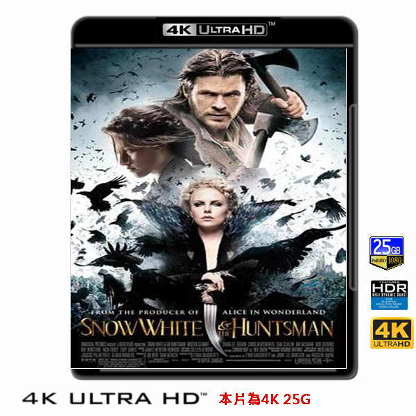 商品屬性 [片名] 公主與狩獵者 Snow White and the Huntsman (2012) 4KUHD25G [年份] 2012 [格式] 4KUHD25G50G [片裝數] 1 [發音] 英...等 [字幕] 繁中/簡中/英 [備註] 本片為4KUHD25G,藍光機無法播放,必須用4KUHD25G帶HDR的播放機來放影 本片為4KUHD - 25G本片為4KUHD影片,必須用4KUHD帶HDR播放機才可以播放,一般藍光機(Blu-ray Player, PS3, PS4, PS4 pro,Blu-ray Rom,升級後的Xbox ONE S/X 均無法讀取影片).HDR效果:必須4KUHD播放機配合電視為4K帶HDR及亮度達700NIT以上才可以完美享受HDR效果.市場上很多假4K播放機及平價假4K電視,相關規格不詳,請小心購買.有關4KUHD的問題,請參考>>>>點入參考<<<4KUHD實物包裝如圖:《魔境夢遊》製作團隊重金打造奇幻史詩冒險動作鉅片,徹底顛覆觀眾對經典童話的想像,《暮光之城》系列克莉絲汀史都華、《全民超人》莎莉塞隆、《雷神索爾》克里斯漢斯沃主演。「白雪公主」的童話人們早已耳熟能詳,不過當世界上最美的女人不再嬌弱,故事將會出現什麼意想不到的發展?惡皇后拉維娜(莎莉塞隆飾)千方百計要置公主(克莉絲汀史都華飾)於死地,但機伶的公主卻逃過一劫,躲進黑暗森林。惡皇后氣急敗壞,派出狩獵者艾瑞克(克里斯漢斯沃飾)前去追殺公主,未料,艾瑞克竟反叛皇后,將一切戰鬥技能私相授受。公主不但習得防身之術,甚至能威脅皇后的地位。而這個傳頌百年的故事,也將在公主與皇后的正面對決後出現最新結局。繼《魔鏡,魔鏡》率先以喜劇顛覆童話故事後,本片將「白雪公主」改寫為史詩戰爭鉅片,更要以驚悚冷冽的風格刻畫童話故事中所富含的哲學寓意。兩部「新白雪公主」雖風格迥異,但「壞皇后」一角分別請到茱莉亞羅勃玆與莎莉塞隆兩位好萊塢影后演出,也成為影迷關注焦點。