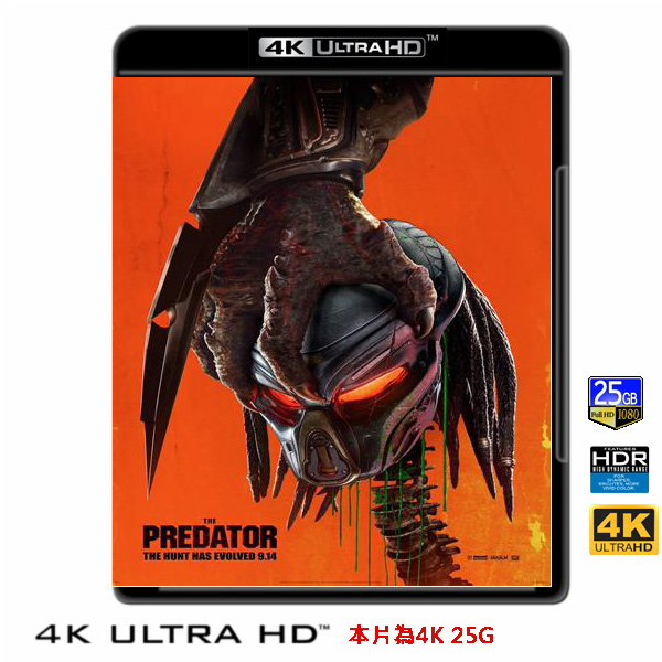 商品屬性 [片名] 鐵血戰士 The Predator (2018) 4KUHD25G [年份] 2018 [格式] 4KUHD25G50G [片裝數] 1 [發音] 英...等 [字幕] 繁中/簡中/英 [備註] 本片為4KUHD25G,藍光機無法播放,必須用4KUHD25G帶HDR的播放機來放影 本片為4KUHD - 25G本片為4KUHD影片,必須用4KUHD帶HDR播放機才可以播放,一般藍光機(Blu-ray Player, PS3, PS4, PS4 pro,Blu-ray Rom,升級後的Xbox ONE S/X 均無法讀取影片).HDR效果:必須4KUHD播放機配合電視為4K帶HDR及亮度達700NIT以上才可以完美享受HDR效果.市場上很多假4K播放機及平價假4K電視,相關規格不詳,請小心購買.有關4KUHD的問題,請參考>>>>點入參考<<<4KUHD實物包裝如圖:一艘宇宙飛船墜落地球,正在執行軍事任務的狙擊手奎因‧麥肯納(波伊德‧霍布魯克 飾演)恰好遭遇外星人並發生激戰,僥倖逃脫的他撿到了外星人的裝備並寄回了家想再做他用。傳說這種被稱為鐵血戰士的外星人曾數次光臨地球,使用各種殘忍的手段對人類進行獵殺遊戲。而這一次,奎因的兒子羅里收到包裹後意外觸發機關,引來了更強大的終極鐵血士降臨地球。而想要阻止其大開殺戒的卻是一群問題士兵和一位生物科學家凱茜‧布拉克(奧立薇婭‧瑪恩 飾演)。事情卻遠不像他們以為的那樣簡單,一場鐵血、終極鐵血與人類之間的三方獵殺大戰正式拉響!