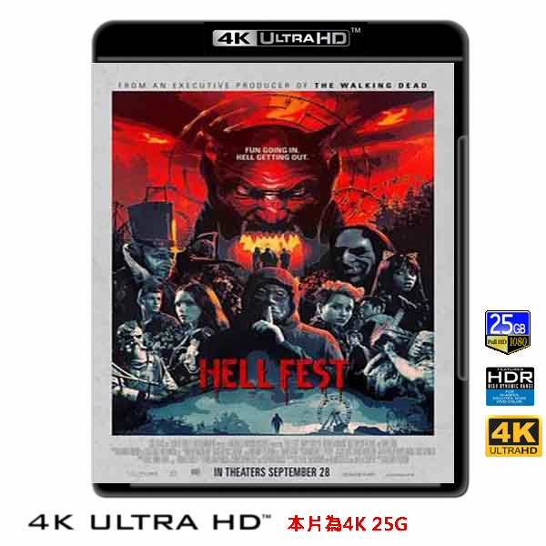 商品屬性 [片名] 嚇地獄 Hell Fest (2018) 4KUHD25G [年份] 2018 [格式] 4KUHD25G50G [片裝數] 1 [發音] 英 [字幕] 繁中/簡中/英 [備註] 本片為4KUHD25G,藍光機無法播放,必須用4KUHD25G帶HDR的播放機來放影 本片為4KUHD - 25G本片為4KUHD影片,必須用4KUHD帶HDR播放機才可以播放,一般藍光機(Blu-ray Player, PS3, PS4, PS4 pro,Blu-ray Rom,升級後的Xbox ONE S/X 均無法讀取影片).HDR效果:必須4KUHD播放機配合電視為4K帶HDR及亮度達700NIT以上才可以完美享受HDR效果.市場上很多假4K播放機及平價假4K電視,相關規格不詳,請小心購買.有關4KUHD的問題,請參考>>>>點入參考<<<4KUHD實物包裝如圖:融合《是誰搞的鬼》驚悚懸疑 X《德州電鋸殺人狂》血腥殘暴 X《絕命終結站》創意死法。 是遊戲還是逃命?! 娜塔莉(艾美芙賽斯 飾)與朋友們相約到地獄樂園參加狂歡祭,縱情玩樂的同時,他們卻遇上戴著面具的冷血殺人魔,更目睹弒血命案的整個過程。娜塔莉等人嚇得魂飛魄散,拼了命想逃離恐怖殺人魔的魔掌,找到生路,然而其他遊客卻以為這一切都是主辦單位精心安排的試膽會,殊不知,歡樂遊樂園早已變成殺人魔的嗜血遊樂場……。