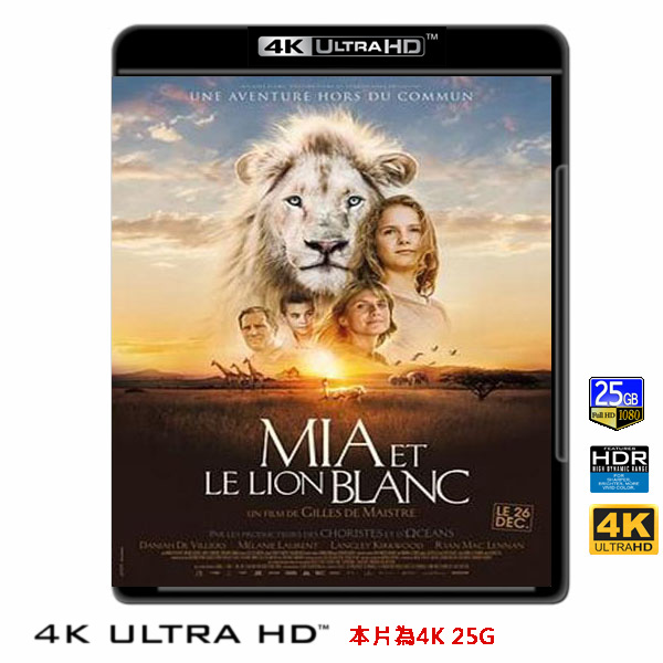 商品屬性 [片名] 米亞和白獅 Mia and the White Lion (2018) 4KUHD25G [年份] 2018 [格式] 4KUHD25G50G [片裝數] 1 [發音] 英 [字幕] 繁中/簡中/英 [備註] 本片為4KUHD25G,藍光機無法播放,必須用4KUHD25G帶HDR的播放機來放影 本片為4KUHD - 25G本片為4KUHD影片,必須用4KUHD帶HDR播放機才可以播放,一般藍光機(Blu-ray Player, PS3, PS4, PS4 pro,Blu-ray Rom,升級後的Xbox ONE S/X 均無法讀取影片).HDR效果:必須4KUHD播放機配合電視為4K帶HDR及亮度達700NIT以上才可以完美享受HDR效果.市場上很多假4K播放機及平價假4K電視,相關規格不詳,請小心購買.有關4KUHD的問題,請參考>>>>點入參考<<<4KUHD實物包裝如圖:11歲的米亞與父母居住在南非的農場,某日農場誕生了一頭白獅,取名為查理。三年間,米亞與白獅一同長大,有著深刻的友誼,然而在米亞14歲,她發覺父親將要把查理賣給獵人,米亞決定帶著查理逃離這一切。