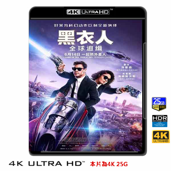 商品屬性 [片名] MIB星際戰警:跨國行動 Men in Black International (2019) 4KUHD25G [年份] 2019 [格式] 4KUHD25G50G [片裝數] 1 [發音] 英 [字幕] 繁中/簡中/英 [備註] 本片為4KUHD25G,藍光機無法播放,必須用4KUHD25G帶HDR的播放機來放影 本片為4KUHD - 25G本片為4KUHD影片,必須用4KUHD帶HDR播放機才可以播放,一般藍光機(Blu-ray Player, PS3, PS4, PS4 pro,Blu-ray Rom,升級後的Xbox ONE S/X 均無法讀取影片).HDR效果:必須4KUHD播放機配合電視為4K帶HDR及亮度達700NIT以上才可以完美享受HDR效果.市場上很多假4K播放機及平價假4K電視,相關規格不詳,請小心購買.有關4KUHD的問題,請參考>>>>點入參考<<<4KUHD實物包裝如圖:曾由威爾史密斯擔綱演出的外星人動作片系列,這次交由克里斯漢斯沃化身H探員出任務!卡司還有泰莎湯普森、連恩尼遜、艾瑪湯普遜。 MIB星際戰警永遠捍衛地球免於宇宙無賴的危害,在新展開的冒險篇章中,他們將要面對另一個巨大危機,MIB中有內鬼出現。 劇情描述,H探員(克里斯漢斯沃 飾演)與M探員(泰莎湯普森 飾演)在看似平常捍衛地球免於外星人威脅的任務中,竟意外發現有敵人的魔爪已滲入MIB總部,引起前所未見的巨大危機⋯這一次,為了維護MIB的使命,兩位探員將潛入世界各地,聯手突破重重挑戰才能解開真相、拯救一切回歸秩序!